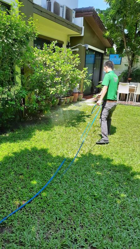 3. ระบบกำจัดปลวกแบบ เหยื่อล่อ สารเคมีที่ใช้ Fipronil 5% SC Bifenthrin 10% EC Imidacloprid 10% Chemicel powder แนวทางการปฎิบัติงาน สำรวจพื้นที่ทั้งหมดโดยละเอียด เพื่อดูสภาพปัญหาก่อนเข้าทำบริการ - ระบบกำจัดปลวกแบบวางท่อ - ฉีดพ่นน้ำยาเคมีภายในและภายนอก ตามรอยแยก รอยร้าว และจุดที่พอปัญหา หรือจุดที่พบพื้นที่ตาม - ใส่สารเคมีผงปลวกบริเวณที่พบปัญหา เพื่อกำจัดการลุกลามของปลวก - ตรวจเช็คปัญหาปลวกตามจุดต่างๆ เช่นตู้หนังสือ ตู้เสื้อผ้า หรือสังเกตุอุโมงค์ทางเดินของปลวก ตามข้างฝา วงกบประตู วงกบหน้าต่าง ห้องใต้บันได ฝ้าเพดาน หรือบริเวณไกล้ห้องน้ำ เป็นต้น - ตรวจเช็คติดตามผล และทำบริการอย่างต่อเนื่อง บริการกำจัดมด แนวทางการปฎิบัติงาน - สำรวจพื้นที่ทั้งหมดโดยละเอียด เพื่อดูสภาพปัญหาก่อนเข้าทำบริการ - หยอดเจลสำเร็จรูปในบริเวณพ่นยาสารเคมีไม่ได้ เช่นแผงบอร์ดสวทซ์ไฟ รอยแตกแยกบริเวณที่มีฝุ่น ละอองมาก หรือบริเวณโต๊ะอาหาร - ติดตามผลและควบคุมปัญหาอย่างต่อเนื่อง - การขอความร่วมมือสุขาภิบาล การดูแลรักษาความสะอาดสถานที่ เพื่อลดปัจจัยสำคัญที่ทำให้เกิดการระบาด แหล่งหลบซ่อน และแหล่งน้ำ เช่นท่อน้ำซึม จากท่อแอร์ หรือพื้นแฉะมีน้ำขัง เป็นต้น สารเคมีที่ใช้ Fipronil 5% SC Bifenthrin 10% EC บริการกำจัดแมลงสาบ แนวทางการปฎิบัติงาน - สำรวจพื้นที่ทั้งหมดโดยละเอียด เพื่อดูสภาพปัญหาก่อนเข้าทำบริการ - ฉีดพ่นน้ำยาเคมีภายในและภายนอก รอบๆตัวอาคาร โดยเน้นที่จุดสำรวจพบแมลงสาบ แหล่งอาหารที่หลบซ่อนและบริเวณที่พบร่องรอย - หยอดเจลสำเร็จรูปในบริเวณพ่นยาสารเคมีไม่ได้ เช่นแผงบอร์ดสวทซ์ไฟ รอยแตกแยกบริเวณที่มีฝุ่น ละอองมาก หรือบริเวณโต๊ะอาหาร - การใช้เหยื่อแมลงสาบสำเร็จรูปเสริมเข้าไปในที่ระบาดของแมลงสาบมากๆเช่น ใต้ตู้ใส่เตาหุ่งต้ม ใต้ซิ้งน้ำ เป็นต้น - ติดตามผลและควบคุมปัญหาอย่างต่อเนื่อง - การขอความร่วมมือสุขาภิบาล การดูแลรักษาความสะอาดสถานที่ เพื่อลดปัจจัยสำคัญที่ทำให้เกิดการระบาด คือแหล่งอาหารและแหล่งหลบซ่อนต่างๆ