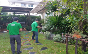 บริการกำจัดยุง แนวทางการปฎิบัติงาน - สำรวจพื้นที่ทั้งหมดโดยละเอียด เพื่อดูสภาพปัญหาก่อนเข้าทำบริการ - ฉีดพ่นน้ำยาเคมีภายในและภายนอก รอบๆตัวอาคาร โดยเน้นที่จุดสำรวจพบแมลงสาบ แหล่งอาหารที่หลบซ่อนและบริเวณที่พบร่องรอย - หยอดเจลสำเร็จรูปในบริเวณพ่นยาสารเคมีไม่ได้ เช่นแผงบอร์ดสวทซ์ไฟ รอยแตกแยกบริเวณที่มีฝุ่น ละอองมาก หรือบริเวณโต๊ะอาหาร - การใช้เหยื่อแมลงสาบสำเร็จรูปเสริมเข้าไปในที่ระบาดของแมลงสาบมากๆเช่น ใต้ตู้ใส่เตาหุ่งต้ม ใต้ซิ้งน้ำ เป็นต้น - ติดตามผลและควบคุมปัญหาอย่างต่อเนื่อง - การขอความร่วมมือสุขาภิบาล การดูแลรักษาความสะอาดสถานที่ เพื่อลดปัจจัยสำคัญที่ทำให้เกิดการระบาด คือแหล่งอาหารและแหล่งหลบซ่อนต่างๆ